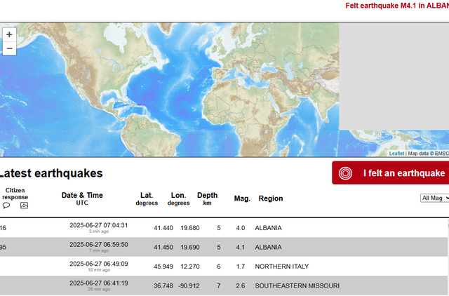 Tiranë, 27 qershor 2025 – Një tërmet me magnitudë 4.1 ka goditur paraditen e sotme zonën e Fushë-Krujës, duke shkaktuar lëkundje të ndjeshme edhe në Tiranë dhe qytete të tjera të vendit. Tërmeti është regjistruar në një thellësi prej 5 kilometrash.