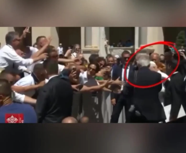 Gjatë afrimit të Papës drejt turmës për të përshëndetur dhe shtrënguar duart me qytetarët, një incident i pazakontë ndodhi.