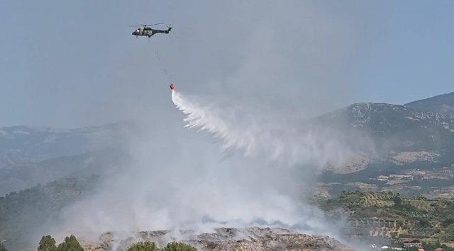 Sipas informacioneve, që prej orës 16:00 të ditës së sotme, helikopterët kanë nisur operacionet ajrore mbi zonën e prekur me qëllim përshpejtimin e ndërhyrjes dhe minimizimin e rrezikut nga përhapja e mëtejshme e zjarrit në thellësinë e mbetjeve.