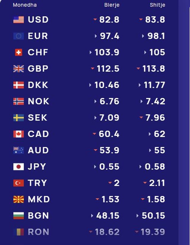 Më poshtë, po sjellim të dhënat e këmbimin valutor, për të gjitha monedhat e huaja: