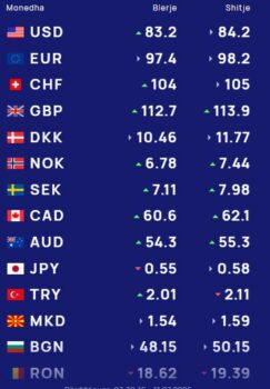 Euro do të blihet me 97.4 lekë dhe do të shitet me 98.2 lekë.