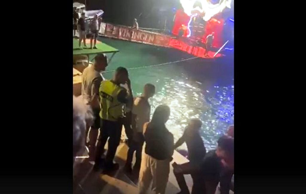 Gjithashtu i dyshuari mbante një çantë rreth qafës, ndërsa dy të tjerët u ndaluan dhe u shoqëruan nga forcat “Shqiponja”. Siç shihet edhe në pamje dhjetra efektivë policorë ishin të pranishëm në shëtitoren e qytetit, ndërsa i dyshuari po notonte në det.