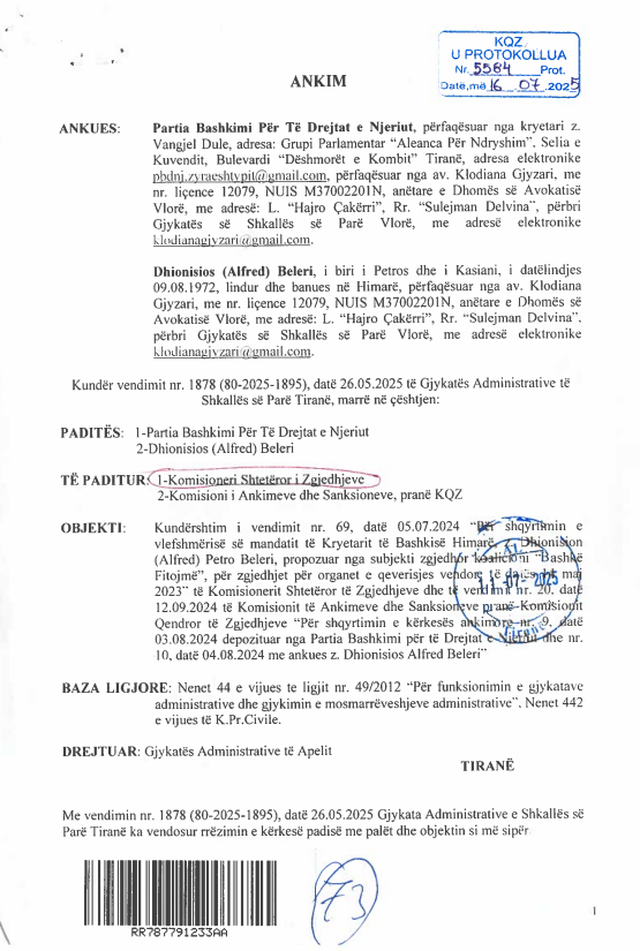 TIRANA- Eurodeputeti Fredi Beleri ka ankimur në Gjykatën Administrative të Apelit vendimin e Komisionit Qendror të Zgjedhjeve, i cili në korrik 2024 i ndërpreu mandatin e kryetarit të bashkisë së Himarës.