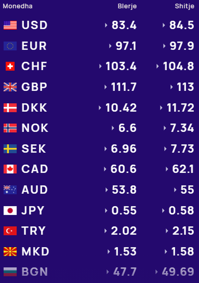 Ndërkohë, euro blihet me 97 lekë dhe shitet me 97.9 lekë.