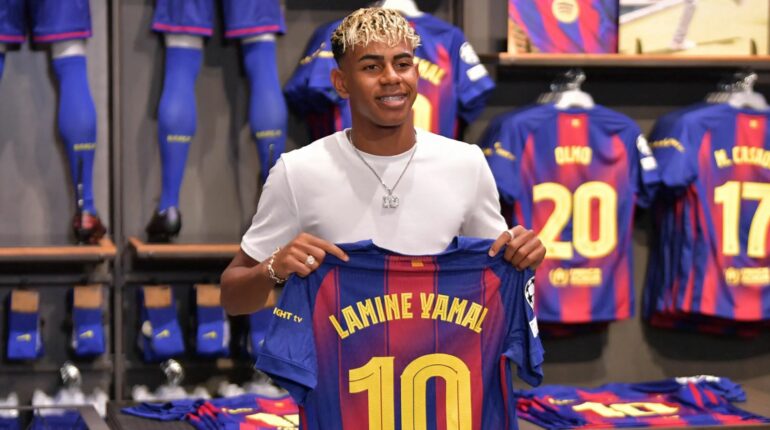Tek Lamine Yamal, Barcelona sheh pasuesin e Messi-t në çdo aspekt, jo vetëm në fushë, por dhe jashtë sajë. Drejtuesit e klubit bluagrana po kujdesen që Yamal të jetë imazhi i ri i klubit, e tashmja dhe e ardhmja, kjo tregohet qartë nga kontrata e fundit që firmosi talenti spanjoll, një kontratë deri në 2031, 20 milionë euro në sezon dhe mbi të gjitha fanella me numrin 10-të.