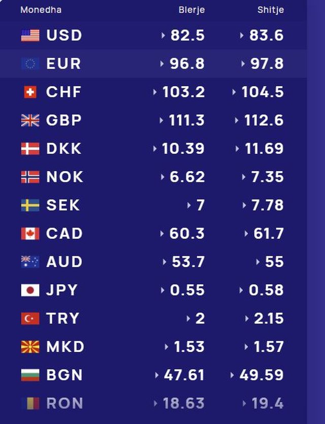 Më poshtë, po sjellim të dhënat e këmbimin valutor, për të gjitha monedhat e huaja: