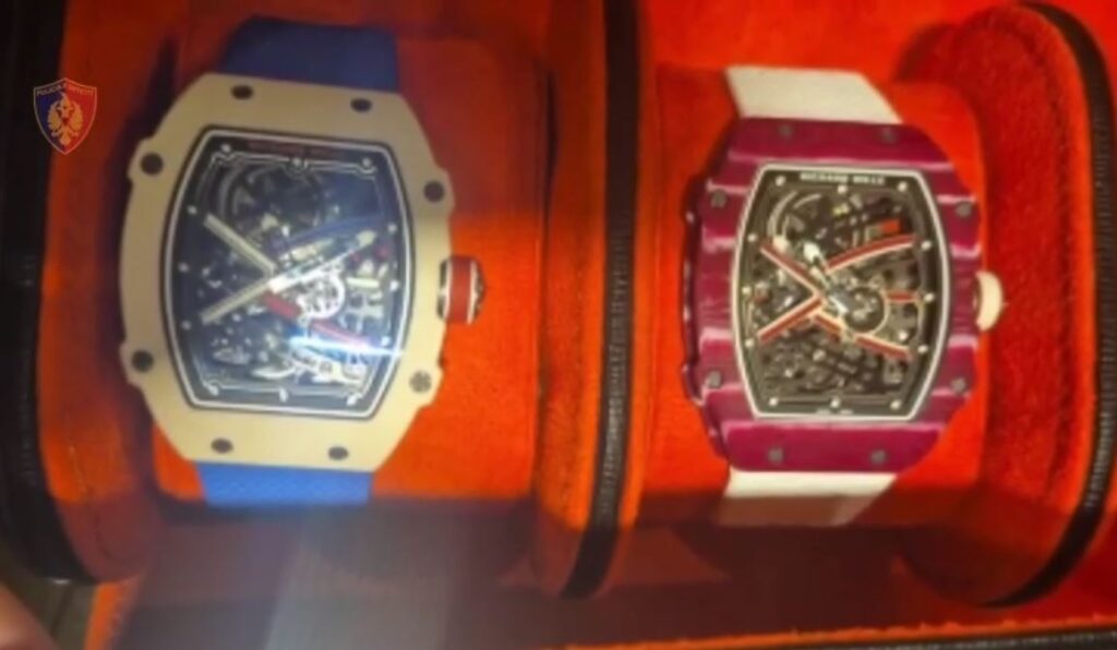 3 armë zjarri të llojit pistoletë, 43470 euro, 5000 franga zvicerane, 3 automjete, përfshirë një Mercedes Benz AMG G63, një Volkswagen Golf 7a dhe një Volkswagen Sharan, 1 skaf luksoz i markës “Hull Works Sarock 40”, prodhim i vitit 2025, i regjistruar në emër të një subjekti tregtar, 1 orë Rolex model 126613LN, 1 orë Richard Mille, model McLaren RM50-03/68, 16 aparate celularë, kryesisht të markave iPhone dhe Samsung, disa me karta SIM aktive, 19 karta bankare ndërkombëtare (Visa, Mastercard, American Express), të lëshuara në emër të personave nën hetim, dokumente bankare dhe transaksionesh financiare me llogari në Emiratet e Bashkuara, Gjermani, Itali dhe Panama, 1 dron, 8 hard disqe të markës Hikvision, me kapacitet 6TB secili dhe sende të tjera që i shërbejnë hetimit.