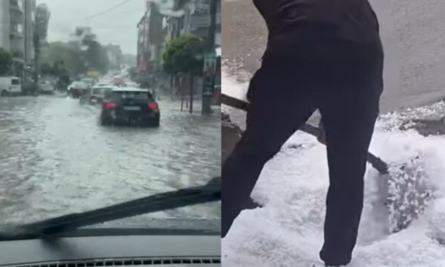 Stuhi të pasdites së sotme kanë përmbytur rrugë, e oborre, ndërsa pamjet e publikuara në rrjetet sociale tregojnë nivel të lartë të ujit dhe breshër të dendur në shumë zona.
