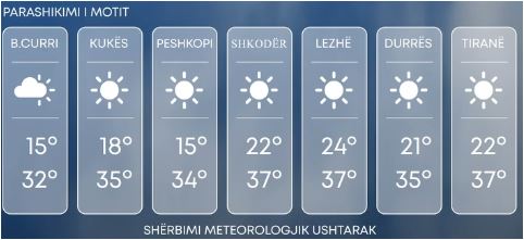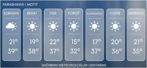 Temperatura maksimale do të shënojë vlerën 39 gradë Celcius në qarkun e Beratit.