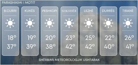 Temperaturat maksimale do të shënojnë vlerën 42 gradë celcius në Shkodër e Lezhë.