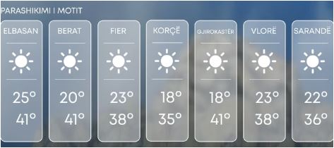 Vendi ynë këtë të hënë do të ndikohet nga kushte atmosferike të qëndrueshme.