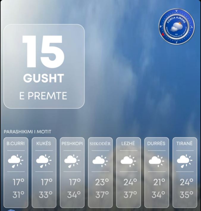 Ditën e premte, vendi ynë do të jetë në ndikimin e kushteve atmosferike relativisht të paqëndrueshme. Moti parashikohet fillimisht i kthjellët, ndërsa gradualisht shtim vranësirash mesatare deri të dendura më të theksuara në relievet malore.