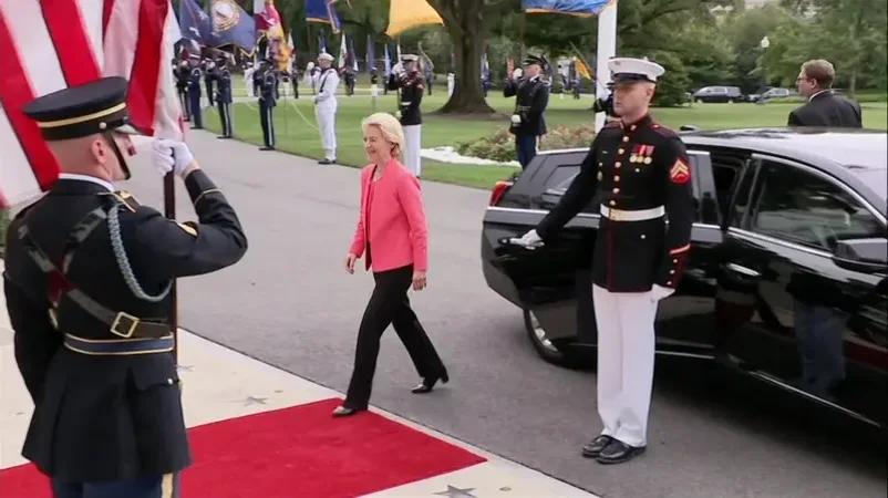Washington- Disa nga liderët e BE-së kanë mbërritur në Uashington, ku do i bashkohen takimit Trump-Zelenskyy në Shtëpinë e Bardhë. Presidentja e Komisionit Evropian, Ursula von der Leyen, Shefi i NATO-s, Mark Rutte, Kryeministrja e Italisë, Giorgia Meloni dhe presidenti francez Emmanuel Macron janë udhëheqësit eropianë që deri më tani kanë mbërritur në Shtëpinë e Bardhë. Të gjithë u pritën nga Shefja e Protokollit, Monica Crowley.