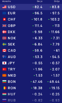 Franga zvicerane do të blihet me 101.8 lekë dhe do të shitet me 103.2 lekë