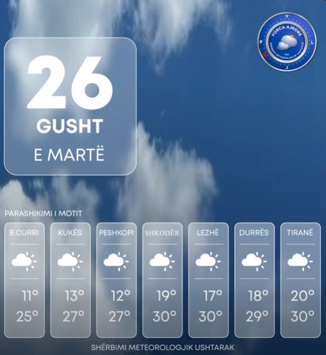 Ditën e martë vendi ynë do të ndikohet nga kushte atmosferike të qëndrueshme.