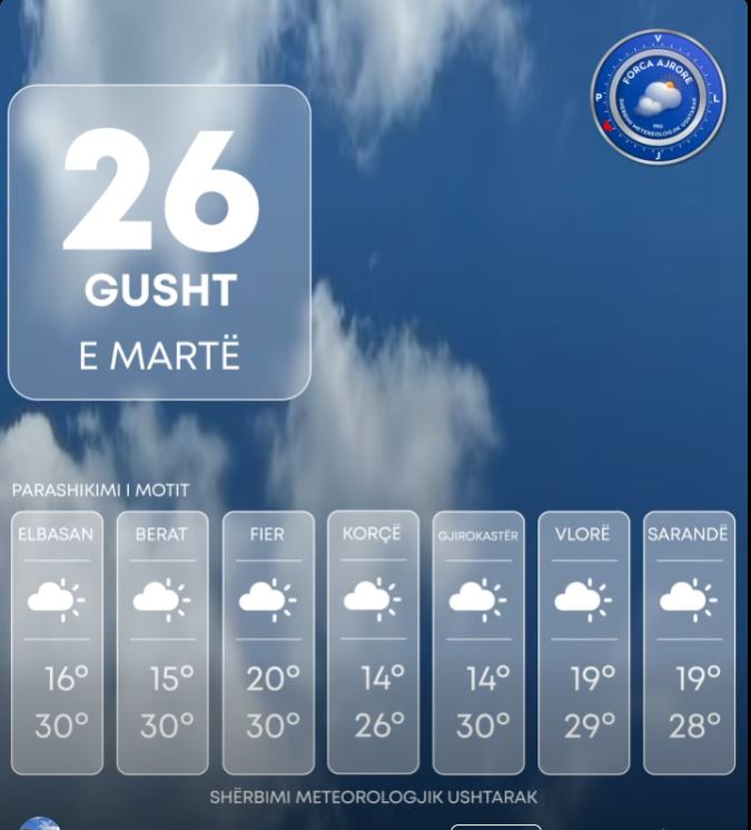 Moti parashikohet të jetë fillimisht me vranësira mesatare deri të dendura, të cilat gradualisht pas mesditës do të vijnë në shpërbërje.