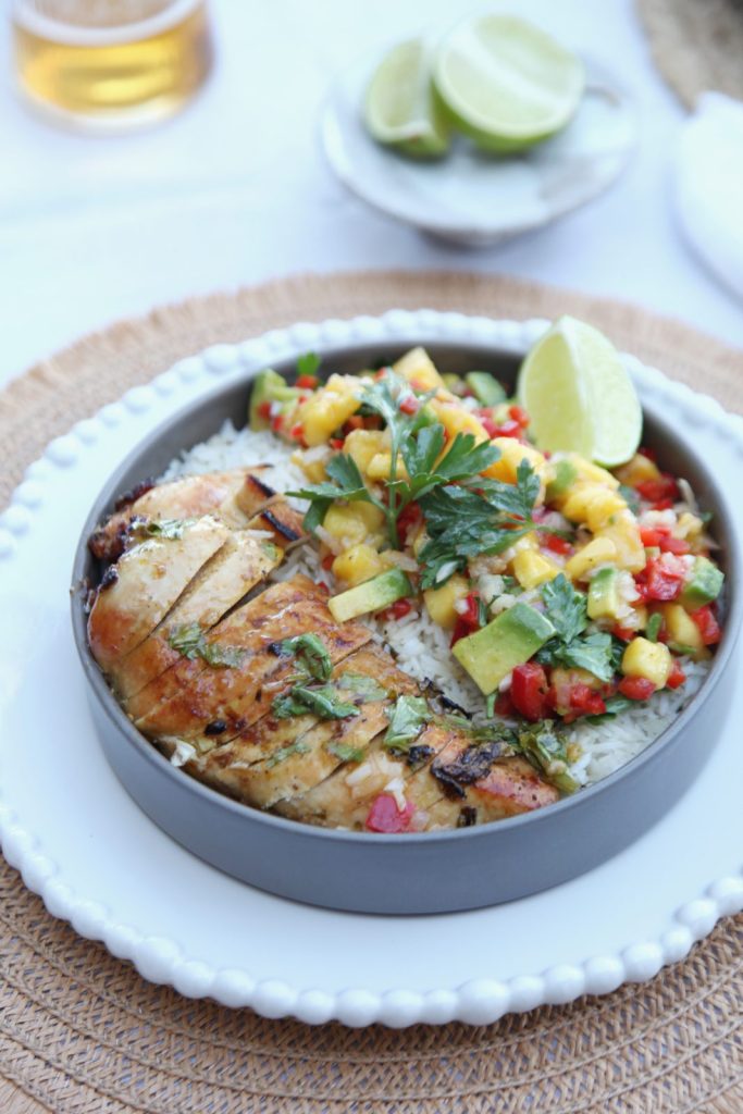 Shërbimi: shërbehet me oriz basmati dhe sallatën mango, dhe mund ta zhysni me marinadën e mbetur për më shumë shije.