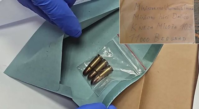 Beograd- Një letër që mbante një zarf me tre plumba ka mbërritur në adresën e ministrit të Brendshëm serb, Ivica Daçiç. Zarfi iu dorëzua qeverisë serbe të enjten, dhe Ministria e Punëve të Brendshme njoftoi një ditë më vonë se policia kishte identifikuar dhe lokalizuar personin që e kishte dërguar paketën.