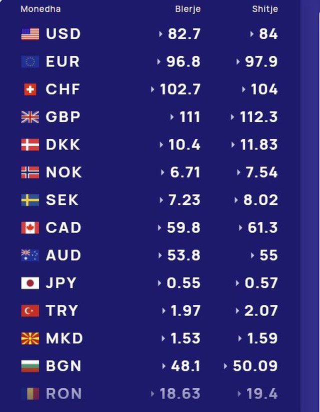 Ndërsa paundi britanik do blihet me 111 lekë dhe do shitet me 112.5 lekë.