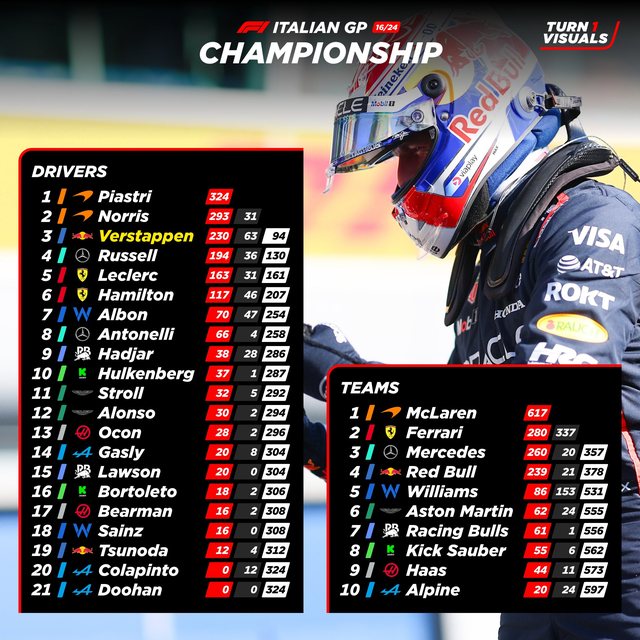 ITALI – Pas pozicionit të tretë të pol-position, Max Verstappen siguroi fitoren e tij të tretë në Çmimin e Madh të Italisë me një performancë të përsosur që e pa atë të kalonte vijën e finishit i pari përpara makinave McLaren të Lando Norris dhe Oscar Piastri. Ferrari përfundoi jashtë podiumit: vendi i katërt për Charles Leclerc përpara George Russell (Mercedes) dhe i gjashti për Lewis Hamilton.