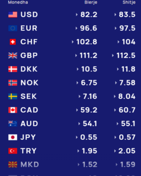 Ndërsa paundi britanik blihet me 111.2 lekë dhe shitet me 112.5 lekë.