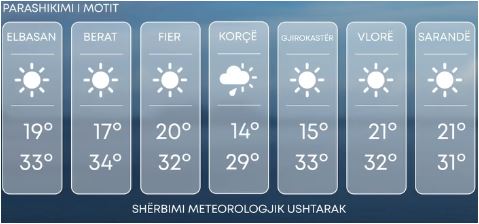Temperatura maksimale do të shënojë vlerën 34 gradë Celcius në qarkun e Beratit.