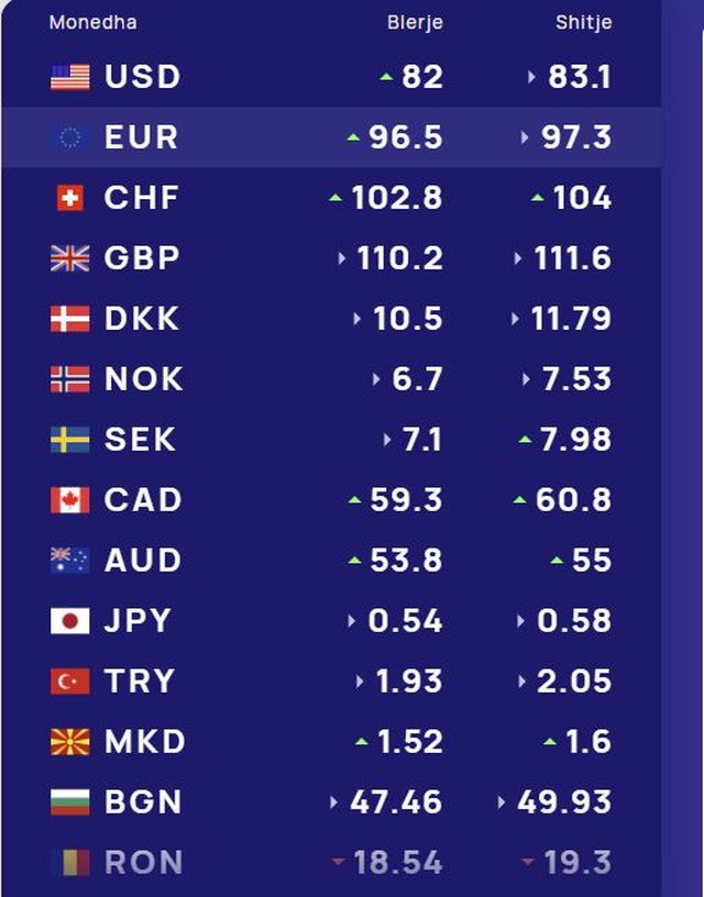 Më poshtë, po sjellim të dhënat e këmbimin valutor, për të gjitha monedhat e huaja: