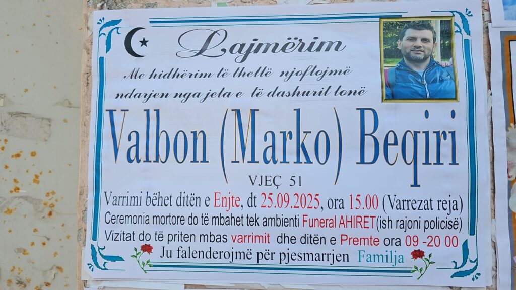 Durrës, 25 Shtator 2025 – Në foto është Valbon Beqiraj, 51 vjeç i gjetur i masakruar me thikë në lagjen nr. 12 të qytetit të Durrësit.