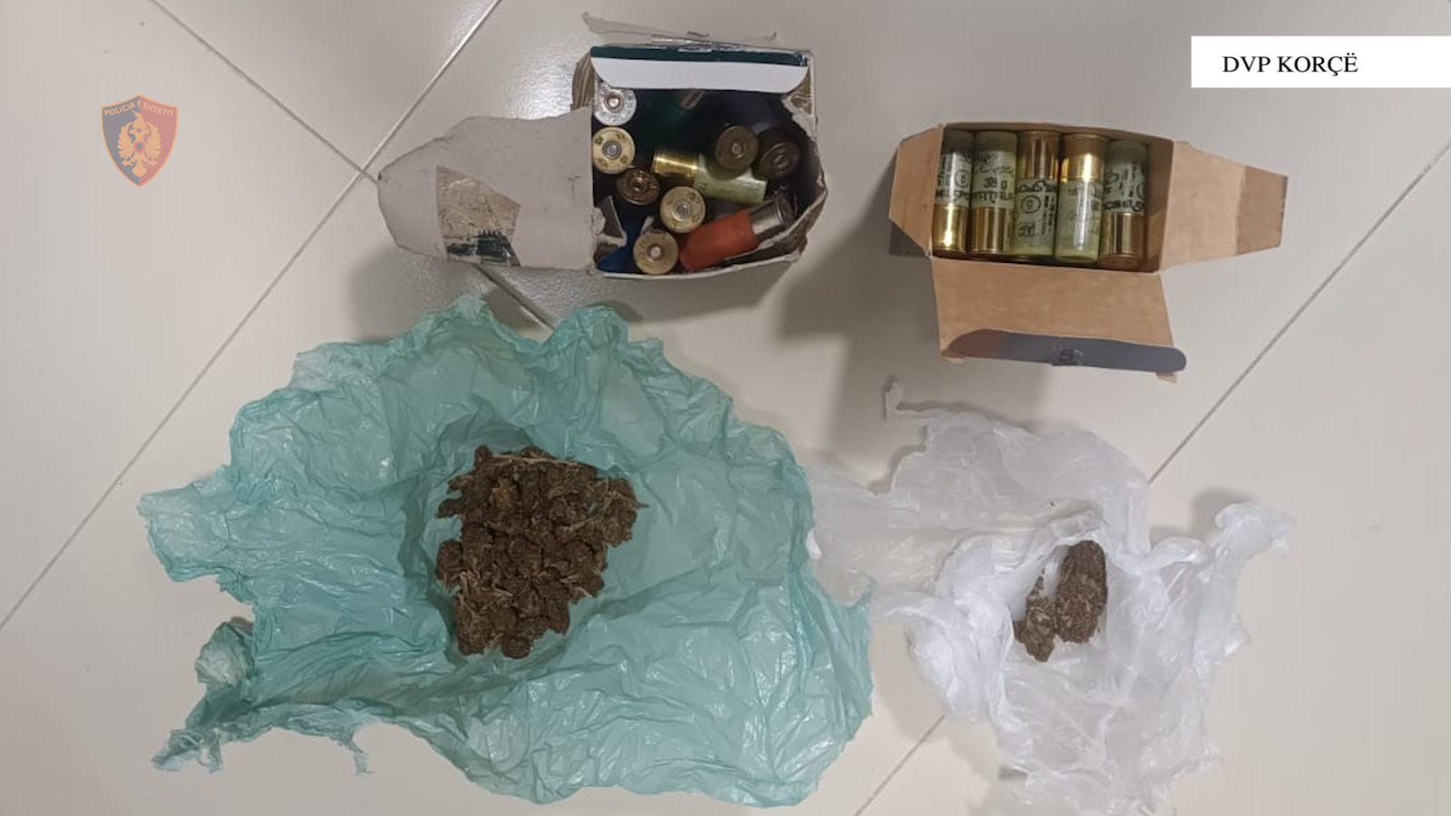 Gjatë kontrollit fizik ndaj shtetasve E. P., 30 vjeç, dhe S. M., 25 vjeç, si dhe gjatë kontrollit në automjetin që ata përdornin, u gjetën dhjetëra doza kanabisi, gati për shitje. Në banesën e shtetasit E. P. u gjetën gjithashtu një sasi tjetër kanabisi, një shumë parash e dyshuar e përfituar nga tregtimi i dozave, si dhe fishekë për armë gjahu.
