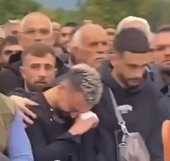 Në fotot e publikuar në rrjetet sociale shihet këngëtari me lot në sy duke i dhënë lamtumirën e fundit vëllait të tij.