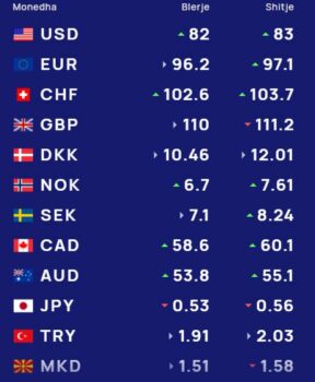 Ndërsa paundi britanik blihet me 110 lekë dhe shitet me 111.2 lekë.