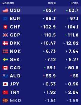 Ndërsa paundi britanik blihet me 110.5 lekë dhe shitet me 111.8 lekë.