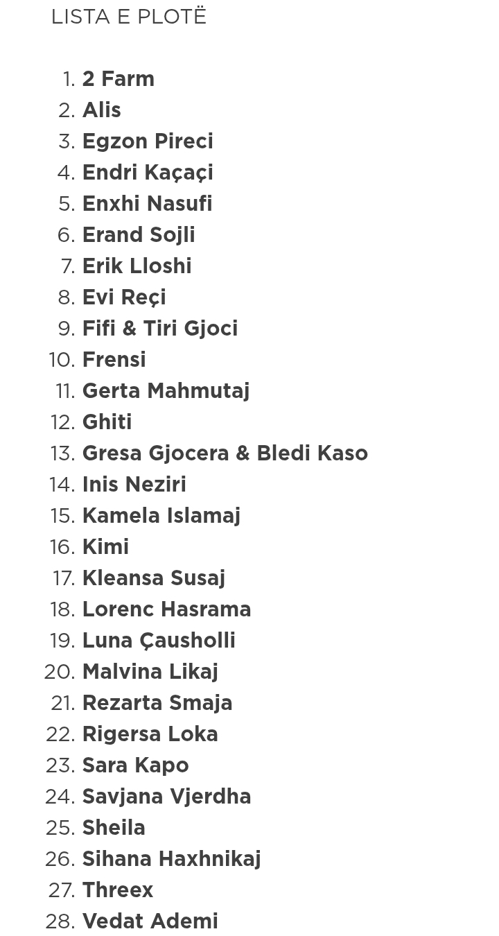 Këtë vit janë përzgjedhur 28 artistë, mes të cilëve disa emra të njohur të muzikës shqiptare, si dhe rikthime të artistëve që kanë lënë gjurmë në muzikën moderne.