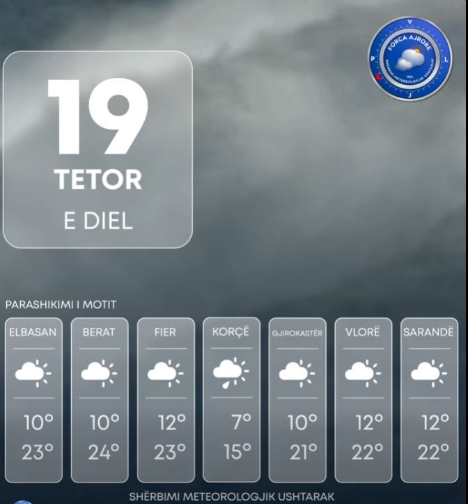 Moti parashikohet i kthjellët e vranësira të pakta kalimtare përgjatë ultësirës perëndimore ndërsa në relievet malore në lindje mot me kthjellime e alternime vranësirash mesatare dhe hera-herës deri të dendura.