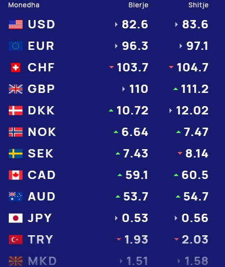 Më poshtë, po sjellim të dhënat e këmbimin valutor, për të gjitha monedhat e huaja: