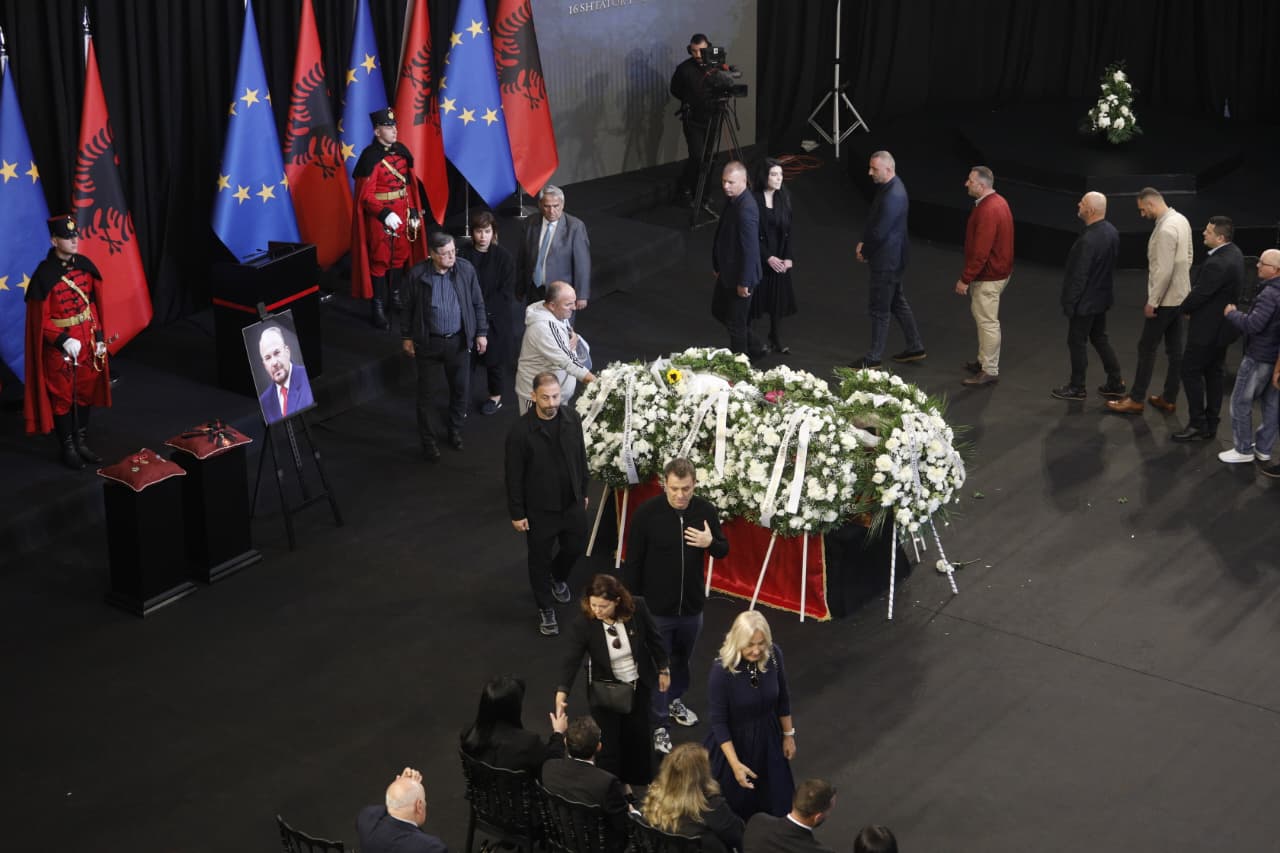 Ceremonia shtetërore u zhvillua në ambientet e Kryeministrisë, ku Garda e Republikës përcolli arkëmortin me nderime solemne. Pas përfundimit të homazheve, kortezhi funebër u drejtua për në varrezat e Sharrës, ku trupi i tij u vendos për prehje të përjetshme në një ceremoni private familjare.