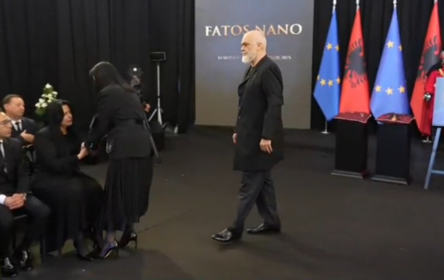 Tiranë- Kryeministri i Shqipërisë Edi Rama ka mbërritur në ceremoninë mortore që po mbahet në nder të liderit historik të PS-së, Fatos Nano.