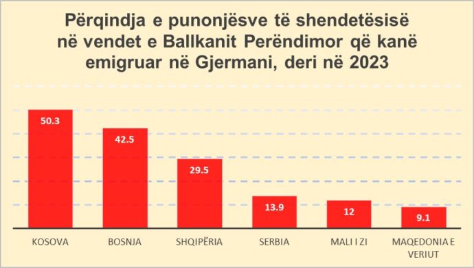 Një studim i fundit në Gjermani mbi emigrimin në vendet e Ballkanit Perëndimor evidentoi se afërsisht 30% stafit shëndetësor nga Shqipëria kishin emigruar në Gjermani deri në vitin 2023.
