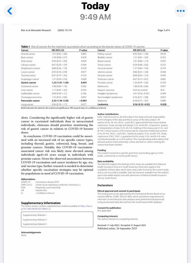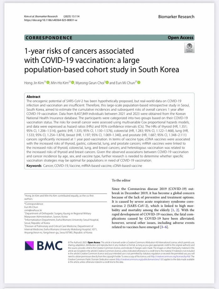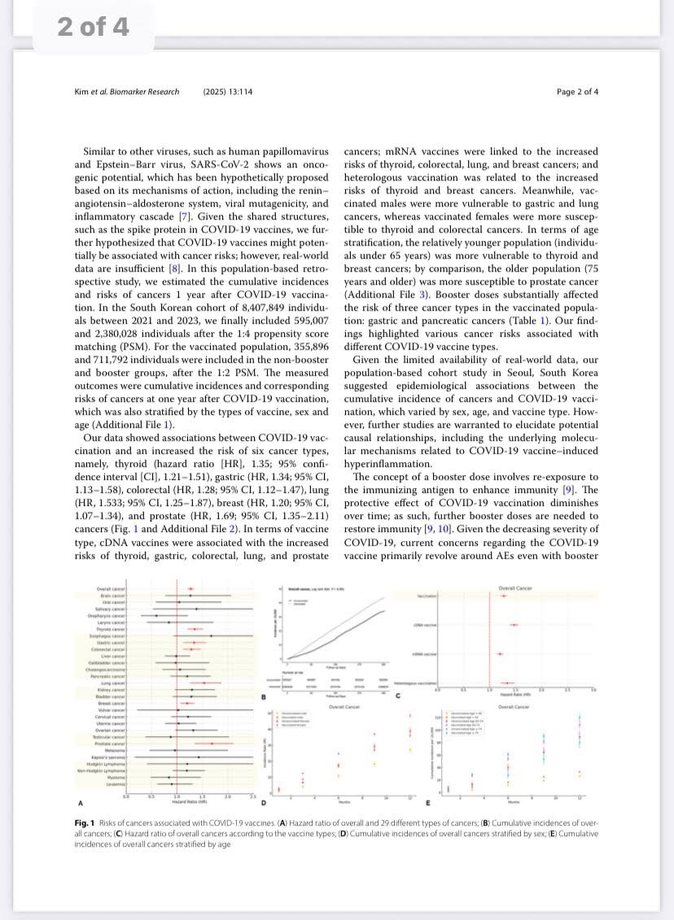 "Studimi me i fundit dhe i pari i ketij lloji si nje studim epidemiologjik nga prof Kim et al, dhe i kryer ne nje popullate prej me shume se 8 milion njerezish, ne Korene e Jugut, nga vendet e para te vaksinuara ne bote me vaksinat gjenetike te Covid19, tashme evidenton nje rritje prej te pakten 50% te tumoreve ne individet e vaksinuar kundrejt te pavaksinuarve! Tumoret qe ndikohen me shume jane kanceri i tiroides, i stomakut, mushkerive, i zorres se trashe, gjirit, ovareve etj. Nuk ka asnje shpjegim tjeter pervec se urrejtjes ndaj njeriut! Nje holokaust pa asnje diskriminim!", shkruan Prifti.