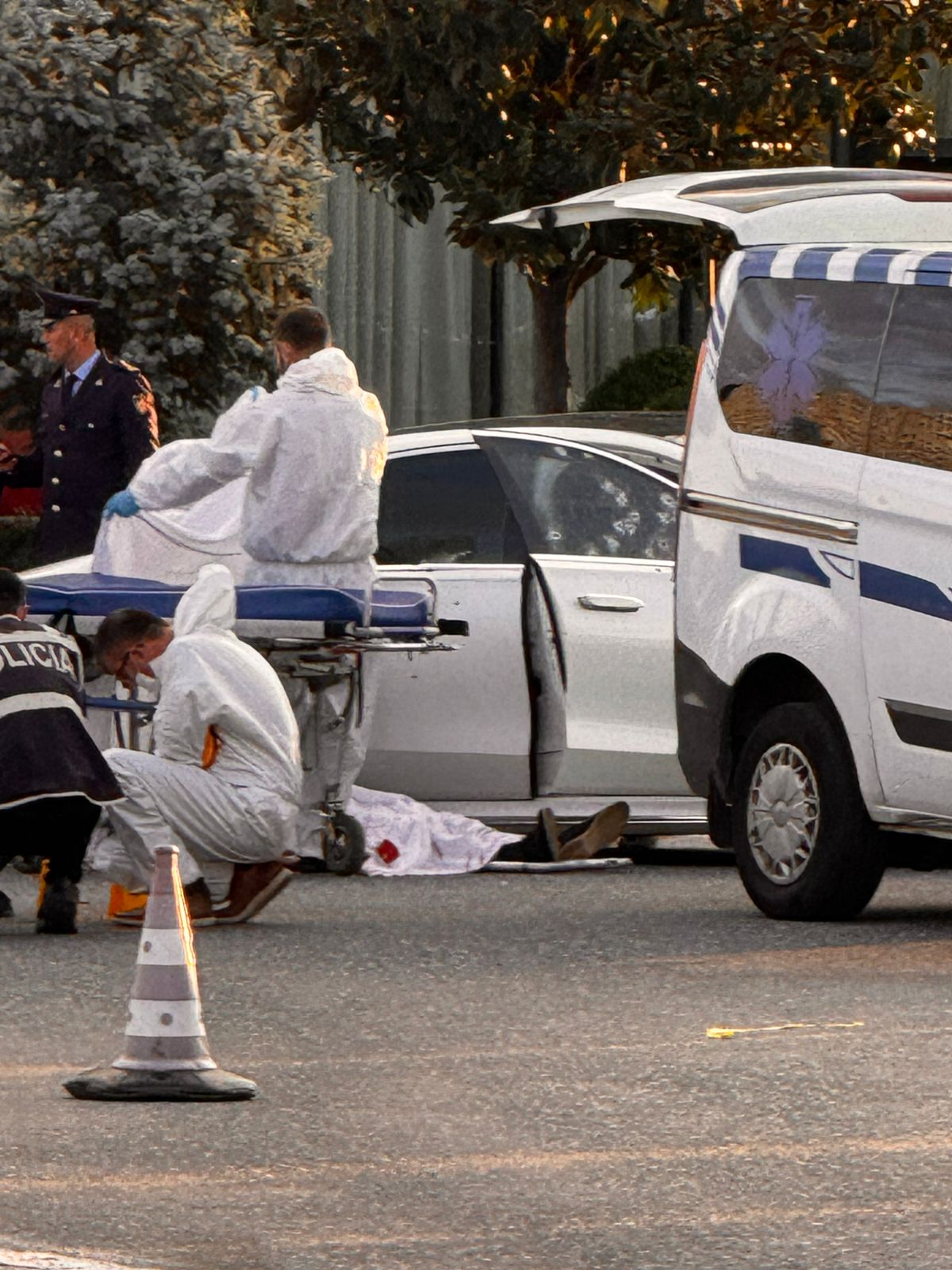 Pamjet më poshtë, të censuruara, që ju sjell noa.al tregojnë momentet pak pas atentatit.