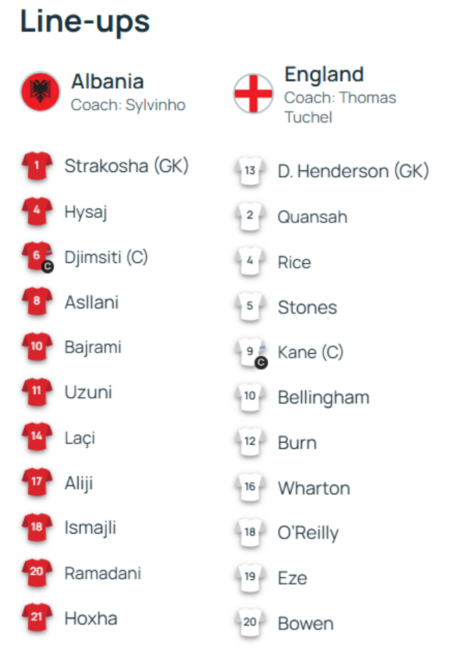 Tekniku i Kombëtares shqiptare, Sylvinho, ka zgjedhur që mos t’i rrezikojë lojtarët të ndëshkuar me karton të verdhë, në mënyrë që të mos humbasin sfidën play off, duke kryer një lloj rotacioni në disa reparte të skuadrës.