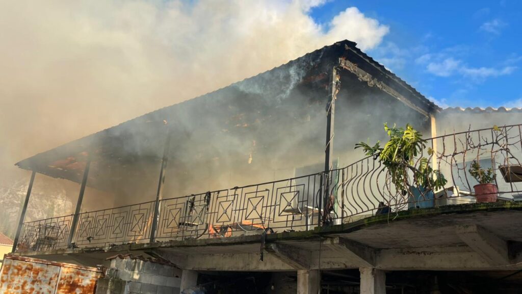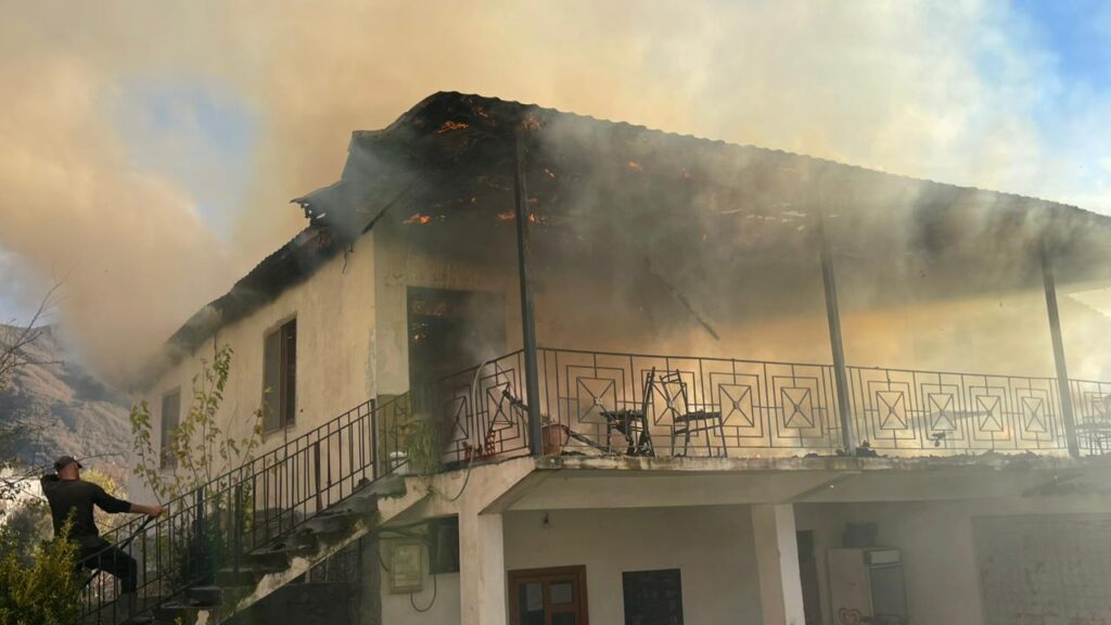 GRAMSH- Një banesë në fshatin Kukur të Gramshit u përfshi nga një zjarr i fortë pasditen e sotme, duke shkaktuar panik tek banorët e zonës. Ekipet e zjarrfikëses ndërhynë menjëherë dhe po vijojnë punën për të vënë nën kontroll flakët, të cilat kanë përfshirë katin e dytë të shtëpisë.