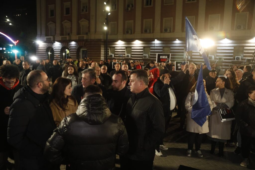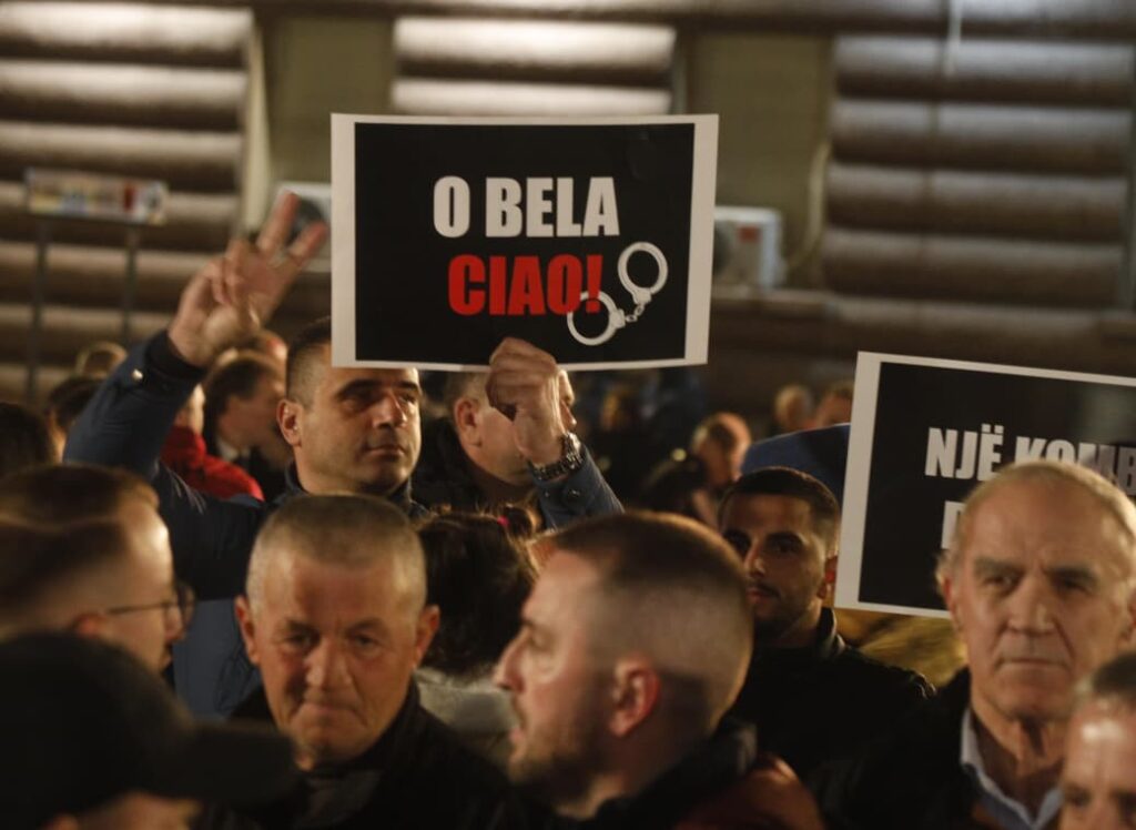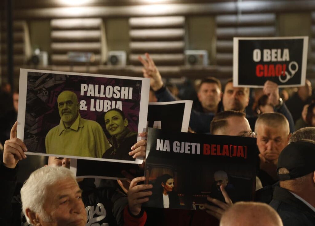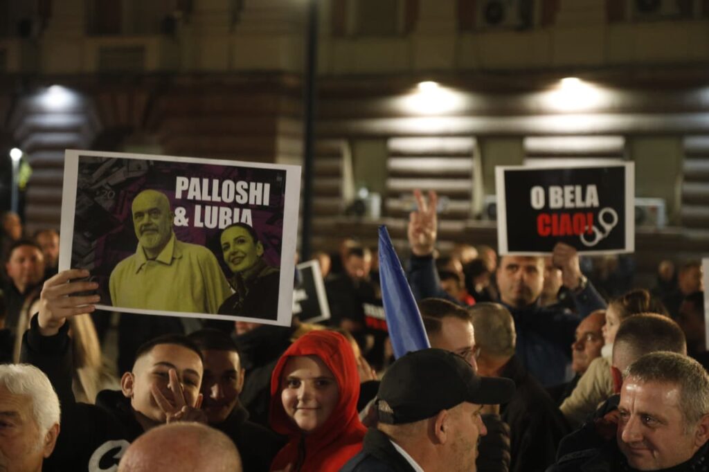 TIRANË- Protesta e rradhës e opozitës ka nisur para ambienteve Kryeministrisë. Disa qytetarë mbajnë në duar pankarta të ndryshme. Në një prej tyre shkruhet "Tunel turqve, port arabëve ndërsa shqiptarëve ‘Noc Rrokun’". Tjetra ‘O Bela Çiao’, ‘Palloshi dhe Lubia’ etj.