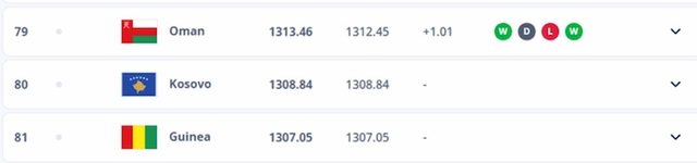 Po kështu, as përfaqësuesja e Kosovës nuk ka pësuar ndryshime në klasifikimin e FIFA. Dardanët e mbyllën këtë vit në vendin e 80-të që është pozicionimi më i mirë i tyre që nga momenti kur u anëtarësua në organizmin më të lartë të futbollit botëror.