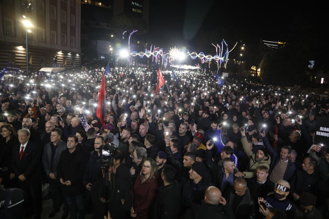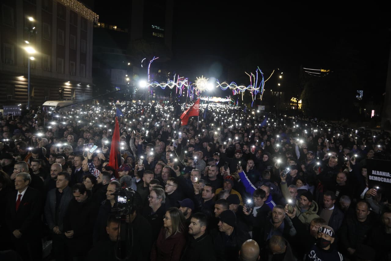 TIRANË, 22 dhjetor 2025 Mijëra qytetarë u mblodhën mbrëmjen e sotme në shesh, në protestën kombëtare të thirrur nga Partia Demokratike kundër qeverisë dhe kryeministrit Edi Rama.