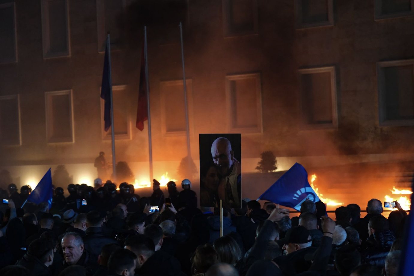Gjatë protestës së opozitës të zhvilluar mbrëmjen e sotme para Kryeministrisë, janë shënuar episode tensioni, ku persona ende të paidentifikuar kanë hedhur mjete ndezëse në drejtim të godinës qeveritare.