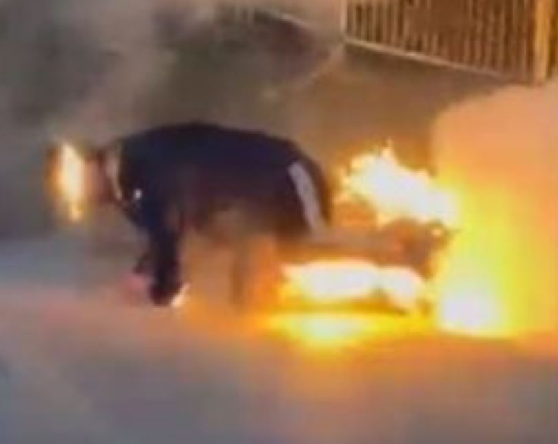 Personi u mbulua nga flakët për disa sekonda, por menjëherë reagoi duke u larguar me vrap.