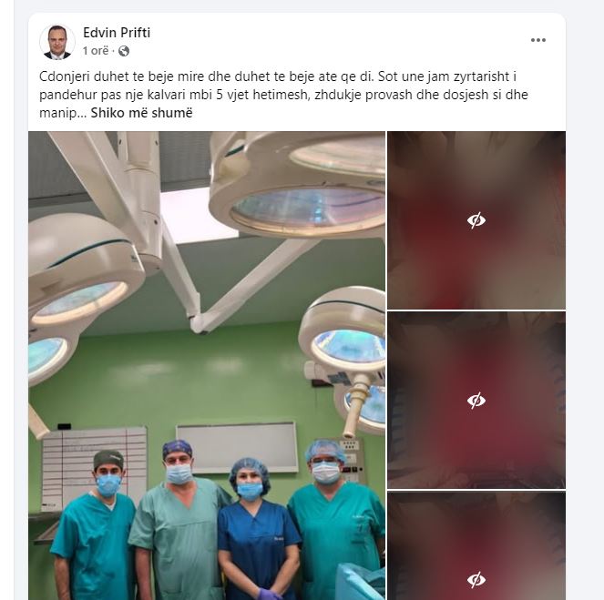 Menjëherë pas kësaj, mjeku ka postuar një status në Facebook ku shkruan: Çdo njeri duhet të bëjë mirë dhe duhet të bëjë atë që di. Sot unë jam zyrtarisht i pandehur pas një kalvari mbi 5 vjet hetimesh, zhdukje provash dhe dosjesh, si dhe manipulimesh. Sot seanca paraprake e GJKKO, pas dy vjetësh, mori vendimin që të më çojë në gjykim. Nuk është se kisha iluzione mbi vendimin. M’u sugjerua gjykim i shkurtuar dhe ky u refuzua në mënyrë kategorike prej meje, duke qenë i gatshëm të përballem me çdo fakt dhe argument. Në këto kushte, unë ftoj të gjithë pacientët e mi, që kushdo që e ndjen, mund të vijë në gjykatë të dëshmojë se cili jam unë?!