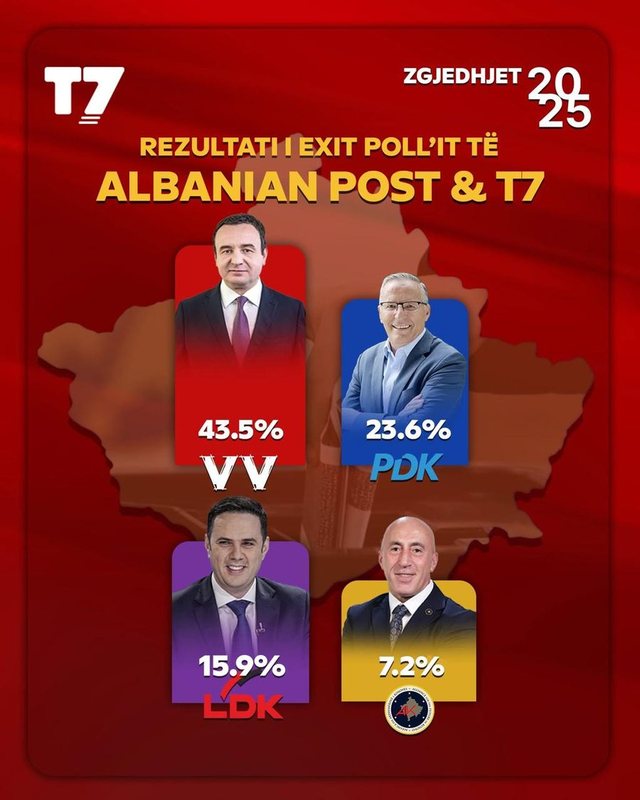 Në të tre Exit Poll-et e bëra nga disa media në Kosovë, në bashkëpunim edhe me kompani sondazhesh, ajo që bie në sy është kryesimi i Albin Kurtit dhe VetëVendosjes, i cili rezulton të ketë arritur nga 43-46 % të numrit të votave.