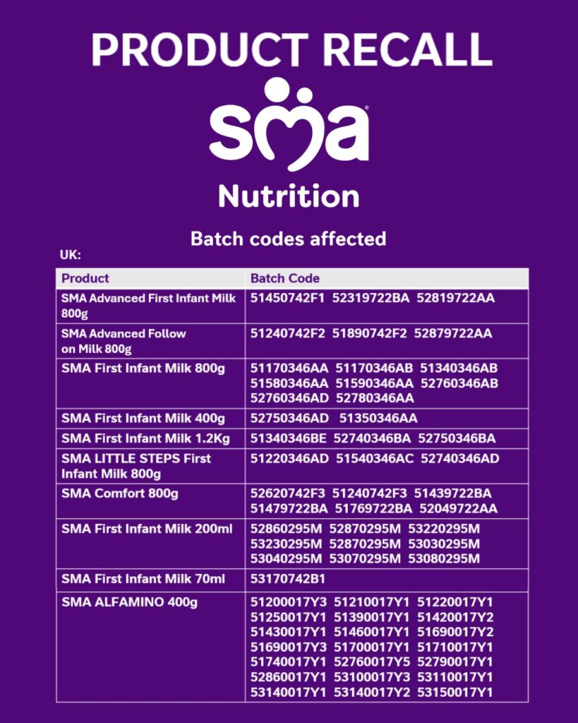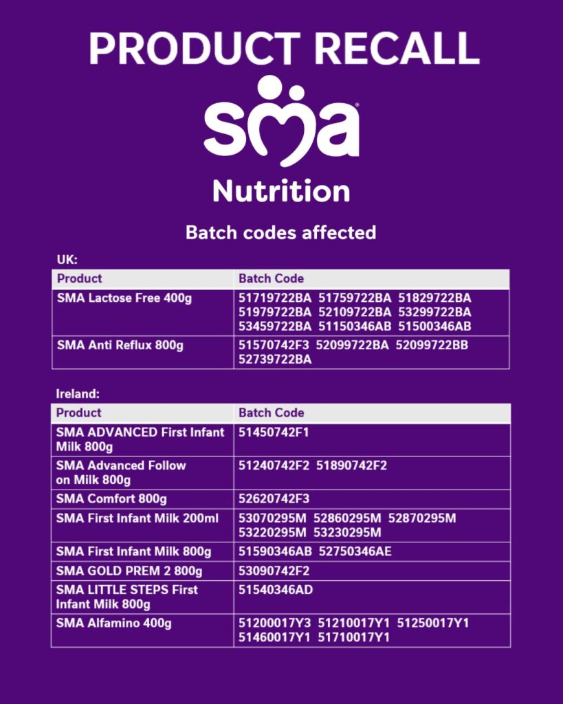 Tërheqja përfshin seri të caktuara të formulave SMA Infant Formula dhe Follow-on Formula